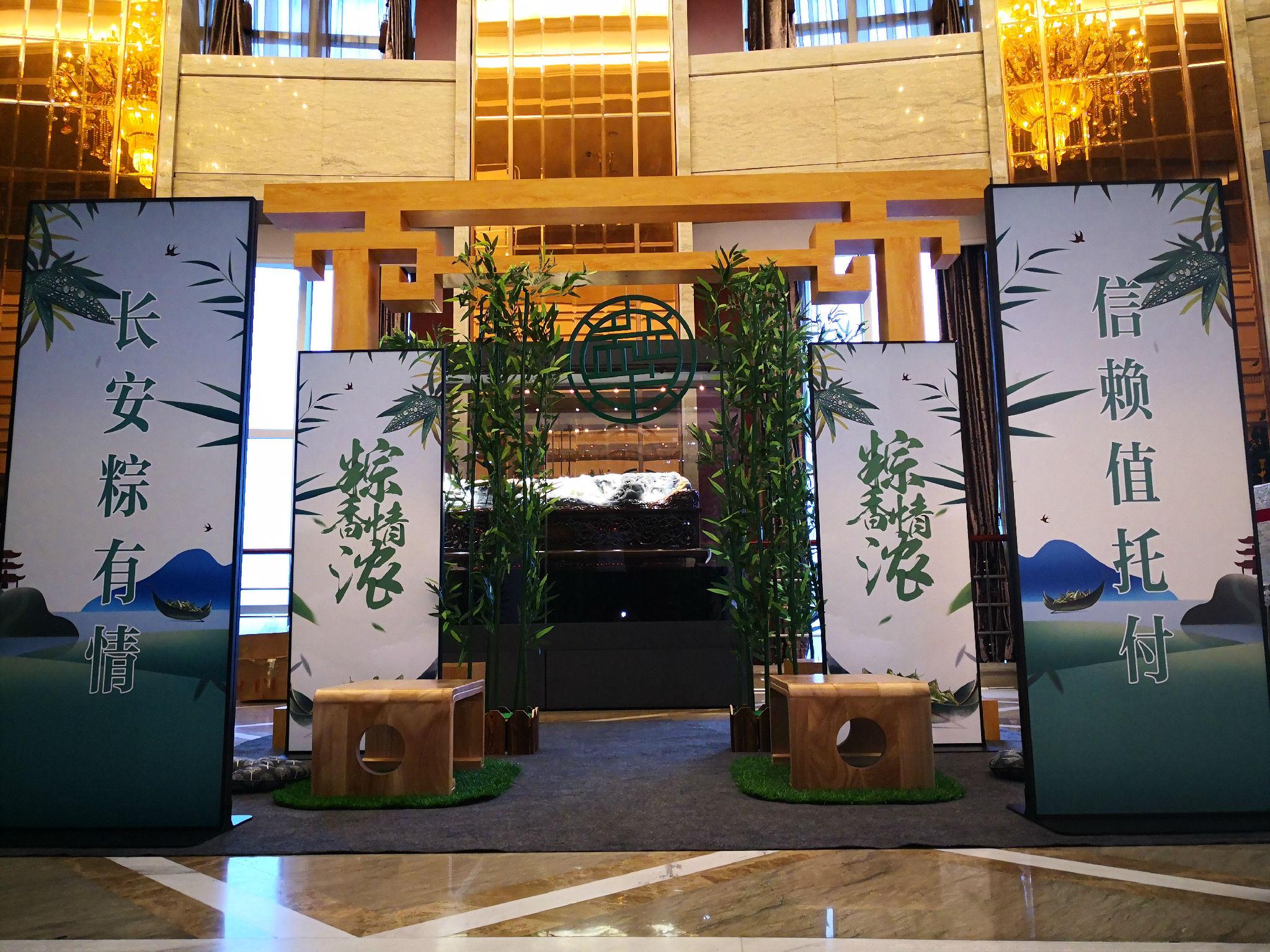 近日,走进长安信托,客户们会惊喜地发现以往熟悉的财富中心公共区域悄然发生了改变:电梯口悬起寓意端午安康的节日挂饰;前台放置着精巧的龙舟模型、纳福香包、团扇等摆件;厅堂中运用中国传统特色的拱门、仿真翠竹、古风桌几等元素巧妙搭建出一方清新雅致的展示空间……
