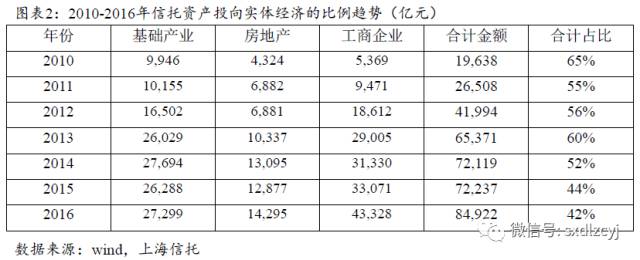 十年来,信托公司“低空”贴近市场,发挥各自股东背景优势,募集信托资金投向资本市场和实体经济,一直是实体经济的重要融资渠道。行业内公司通过积极参与战略性新兴产业、基础设施建设、教育文化医疗改革、区域经济发展(如一带一路、京津冀一体和长江经济带等)来服务经济发展,促进了我国实体经济较快发展。