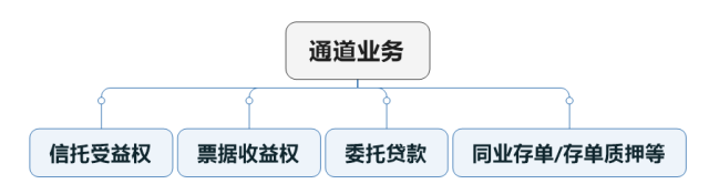 非标业务,四个方向。通道业务是同业业务中的一种,而且是非常重要的一种业务。通道业务主要是投资于非标市场,有几个比较典型的投资方向: