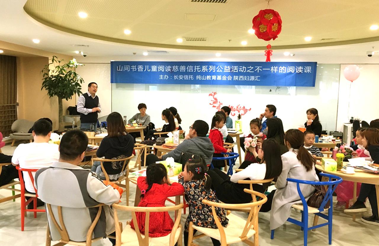 2017年4月9日下午,由长安信托慈善信托部举办的长安信托系列公益活动之“不一样的阅读课”,在西安高新国际商务中心“长安信托沙龙区”火热开讲。家长们通过微信报名如约到场,与担任国际发展机构教育专家多年、现为陕西学前师范学院教育心理学副教授的张俊老师,以及纯山教育基金会特邀的从事儿童阅读推广工作的郑凯老师,一起近距离分享了关于亲子阅读的那些事。